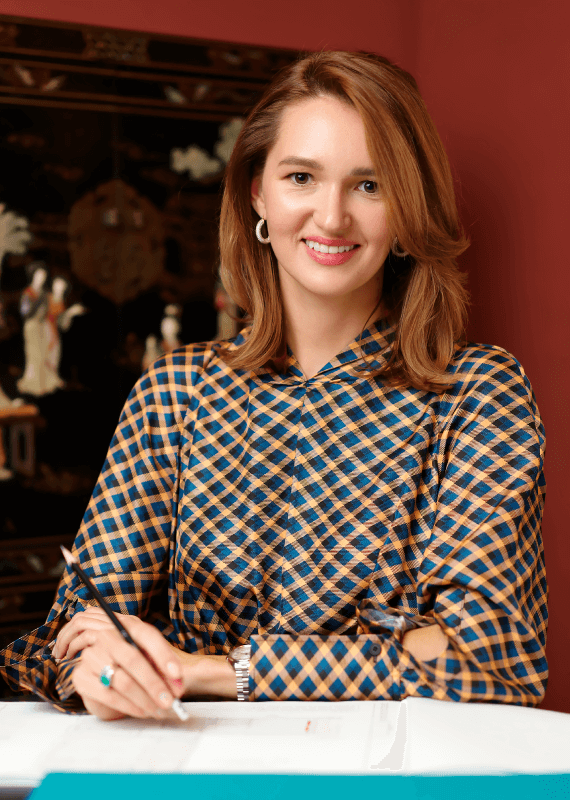Выпускница Британской Высшей Школы Дизайна, Sotheby’s Institute of Art, бизнес-школы RMA, программы атрибуции антиквариата РГГУ, аспирантка факультета культурологии РАНХиГС